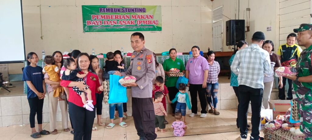 Damai, 25 Oktober 2024 – Aipda Iir Wiranto Kanit Binmas Polsek Damai, turut hadir dalam kegiatan Rembuk Stunting Pemberian Makan Bayi dan Anak (PMBA) yang berlangsung di BPU Ancur Solay Kampung Jengan Danum Kecamatan Damai. Kegiatan ini merupakan bagian dari upaya penanganan stunting di wilayah tersebut, dengan fokus pada edukasi gizi yang tepat bagi bayi dan anak.Acara tersebut dihadiri oleh Camat Damai, Sdr. Iman Setiadi, S.Pi, Ketua TP. PKK Kecamatan Damai Sdri. Evifani Agustin, Kepala Puskesmas Damai, Sdr. Matius Nokong dan perwakilan Koramil Damai Serma Naslim. Turut hadir pula Kasi Pendidikan Kecamatan Damai Sdri. Severa Ernesta, S.Pd, Petugas Gizi Puskesmas Damai Sdri. Nining Wahyuni, Str. Gz, serta narasumber utama Sdr. Rano Patra, yang memberikan materi penting terkait stunting dan pola makan sehat untuk bayi dan anak.Selain itu, perwakilan dari berbagai perusahaan, termasuk PT. TCM, Pama Bek, PT. FKP, PT. MIL, dan THA Group, juga menunjukkan komitmen mereka dalam mendukung program ini. Acara ini turut dihadiri oleh sekitar 100 orang tua dan anak dari berbagai desa di Kecamatan Damai.Kegiatan ini diharapkan mampu meningkatkan pemahaman masyarakat tentang pentingnya pemberian gizi yang baik dan tepat waktu bagi bayi dan anak, serta memperkuat sinergi antara pemerintah, sektor swasta, dan masyarakat dalam mengurangi prevalensi stunting di wilayah Kecamatan Damai.