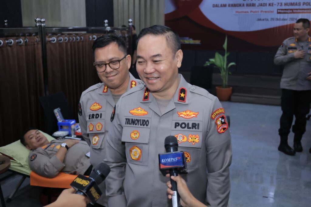 Divisi Humas Polri menyelenggarakan kegiatan Donor Darah yang juga dilakukan serentak di seluruh Polda jajaran hari ini. Hal ini merupakan rangkaian kegiatan-kegiatan yang dilakukan dalam rangka memperingati Hari Jadi Humas Polri yang ke-73 pada Rabu, 30 Oktober mendatang. Humas Polri lahir dengan nama perdana adalah sebagai Kepala Eselon Publik Relation tahun 1951 tanggal 30 Oktober. Maka pada tahun 2024 ini dalam memperingati Hari Jadi yang ke-73 ini dilakukan kegiatan-kegiatan dimulai dengan adanya kegiatan bakti Polri, baik itu bakti sosial, bakti kesehatan, dan bakti lainnya. Kepada Biro Penerangan Masyarakat (Karo Penmas) Brigjen. Pol. Trunoyudo Wisnu Andiko mengatakan, “sebelumnya telah dilaksanakan bakti sosial serta bakti keagamaan seperti santunan ke Pondok Pesantren, Jum’at Berkah dan Minggu kasih ke tempat-tempat ibadah serta panti asuhan sebanyak 73 tempat dengan berkolaborasi bersama rekan-rekan media, kemudian hari ini kami melakukan bakti kesehatan dengan melakukan donor darah bersama rekan-rekan media juga,” ujarnya.Tidak hanya itu, dalam memperingati Hari Jadi ke-73 ini, Divhumas Polri juga sebelumnya telah melakukan kegiatan-kegiatan khataman Qur’an sebanyak 73 kali, tentu hal ini juga sebagai wujud meningkatkan keimanan dan ketaqwaan Personel Divhumas Polri kepada masyarakat selama 73 Tahun mengabdi untuk Negeri.”Kita juga akan melakukan kegiatan silahturahmi dengan Pemred Media dan juga dengan Organisasi Media seperti AJI, IJTI dan organisasi Media lainnya, kemudian ada Kompolnas, serta Dewan Pers. Hal tersebut dilakukan agar terus berkolaborasi, bersinergi dalam memberikan informasi kepada masyarakat. Tak lupa kami juga silaturahmi dengan para Kadiv Humas pada masanya,” katanya.Trunoyudo menambahkan, puncak daripada kegiatan ini adalah pada saat sarasehan yang nantinya kami meminta santiaji dari Kadivhumas pada masanya, kemudian menerima masukan-masukan bagaimana tantangan terdahulu hingga saat ini, perkembangan Humas, sampai dengan tantangan kedepan. “Tentunya hal ini menjadi bagian dan harapan Bapak Presiden RI Prabowo dan juga atas petunjuk dan arahan Bapak Kapolri, sehingga Humas Polri melakukan kegiatan silahturahmi guna meminta masukan-masukan untuk kemajuan Humas dan kemanfaatan bagi seluruh masyarakat Indonesia,” sambungnya.Untuk Donor Darah sendiri, Divhumas Polri berkolaborasi dengan PMI Jakarta dengan menyediakan sekitar 200 lebih kantong darah belum termasuk dengan Jajaran Polda. “Harapannya dengan adanya kegiatan Donor Darah ini dari Humas Polri maupun dari rekan-rekan banyak antusias mungkin akan bertambah jumlah yang donor,” imbuhnya.