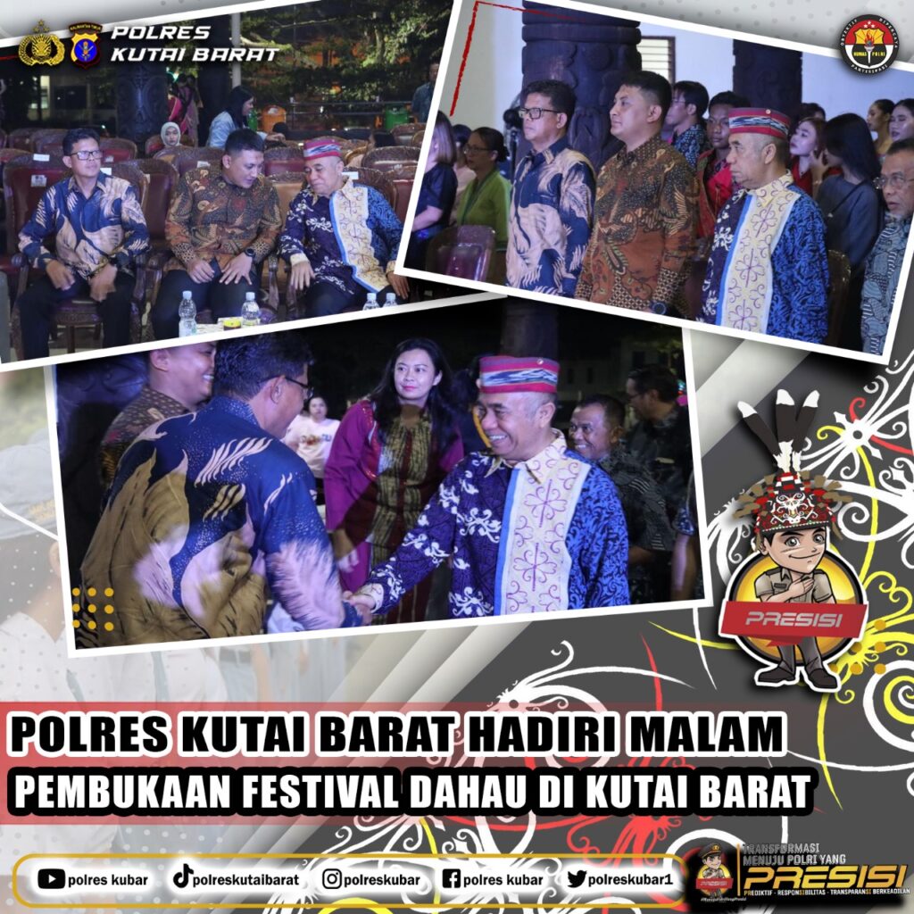 Kutai Barat, 29 Oktober 2024 – Jajaran Polres Kutai Barat menghadiri acara malam pembukaan Festival Dahau di Kabupaten Kutai Barat sebagai bentuk dukungan dalam pelestarian budaya lokal. Festival yang digelar meriah ini dihadiri oleh berbagai elemen masyarakat dan sejumlah pejabat daerah, serta dimeriahkan dengan beragam penampilan seni dan budaya.